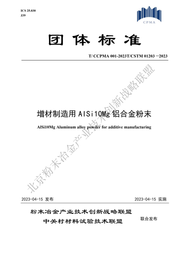 近日,通过资料提交、现场答辩及专家评审,由有研增材技术有限公司牵头,联合增材制造产业链上下游其他五家单位共同制定的团体标准《增材制造用AlSi10Mg铝合金粉末》(标准号:T/ CCPMA 001-2023T/CSTM 01203—2023)荣获2024年度中关村材料试验技术联盟标准创新贡献奖一等奖。